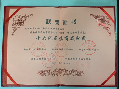 ![]() 2013年十大風(fēng)云滇商成就獎(jiǎng) |