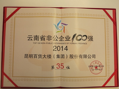 ![]() 2014年云南省非公企業(yè)100強(qiáng)第35位 |