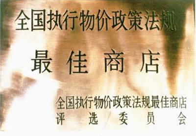 ![]() 全國執(zhí)行物價(jià)政策法規(guī)最佳商店 |