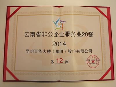 ![]() 云南省非公企業(yè)服務(wù)業(yè)20強(qiáng)第12位 |